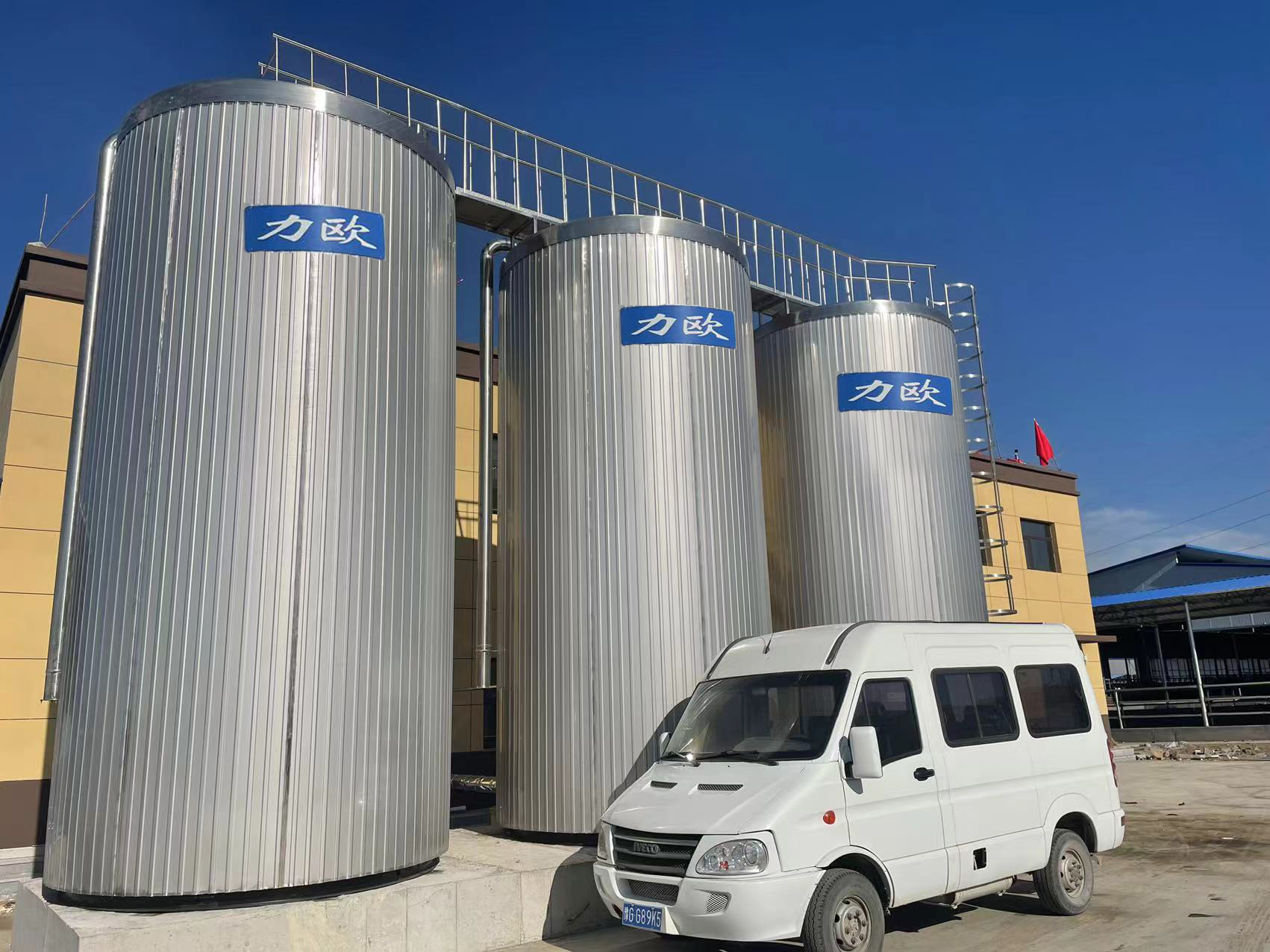 力歐-立式奶倉是用于室外低溫存儲鮮奶的大型不銹鋼收奶容器。通過倉體內(nèi)壁與外層殼體的保溫層絕熱結(jié)構(gòu)以及罐內(nèi)高速推進(jìn)式攪拌器間歇攪拌,使進(jìn)入倉內(nèi)的低溫鮮奶(≤5℃)貯存24小時,且溫度升高不超過2℃、脂肪不上浮。廣泛用于牧場與乳品廠貯存鮮奶。